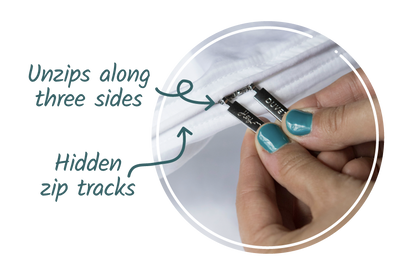Patented covers with an invisible zipper opening on three sides for easy insertion and zipping of the doona.